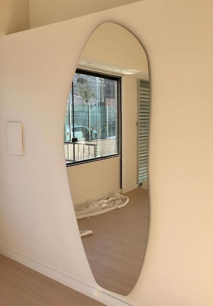 Espelho premium 04 mm prata lapidado com suporte para pendurar