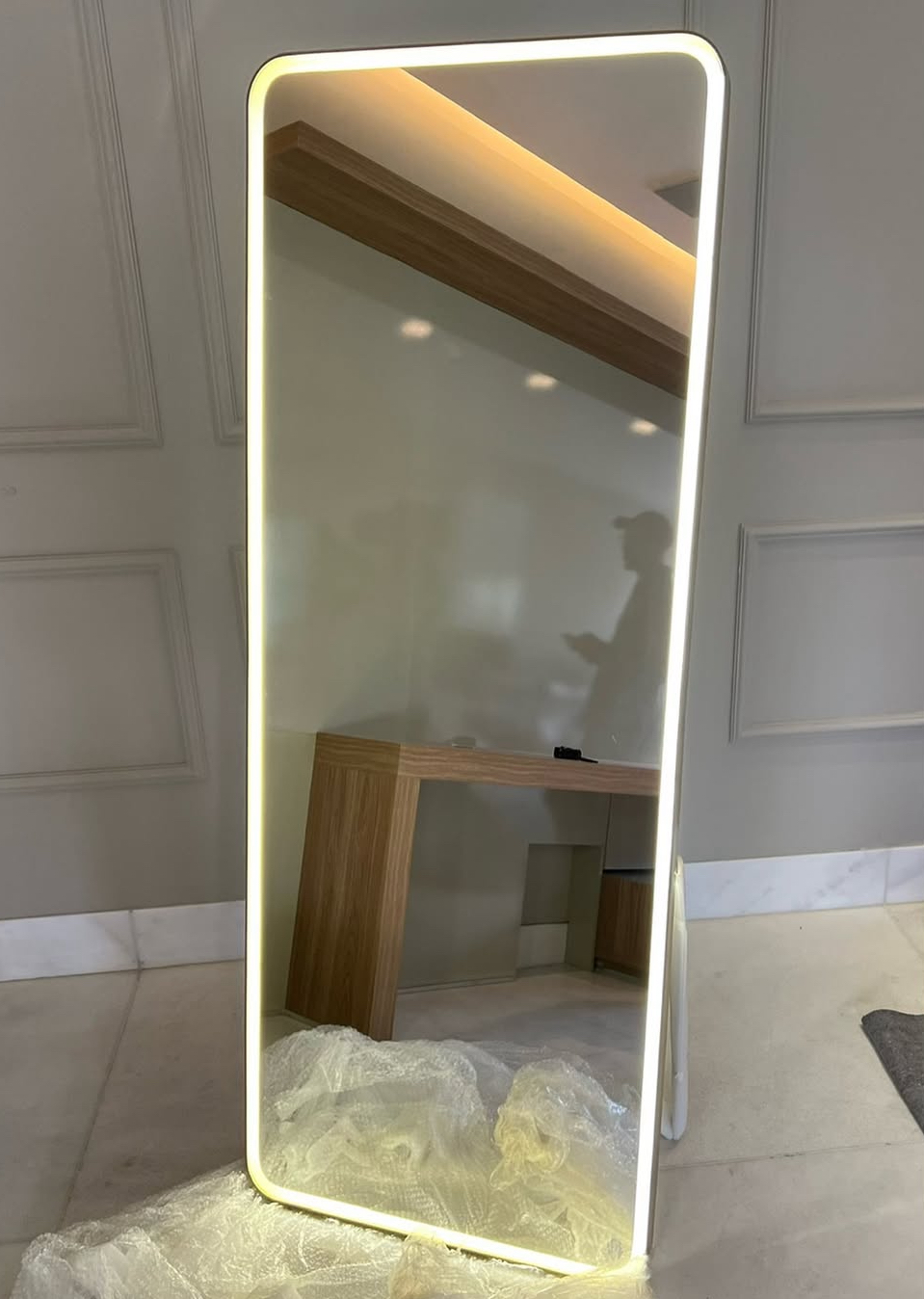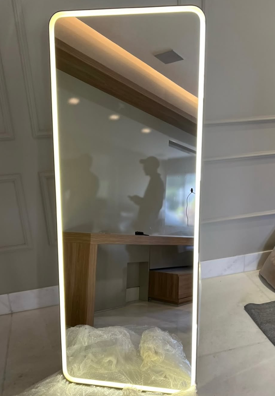 Modelo Dream frontled cantos copos Espelho frontled com cavalete de sustentação .(esse modelo possui também a opção de encostar e de pendurar na parede). Todo em aço carbono com pintura eletrostática. Criação exclusiva! Pode ser customizado…cor da moldura,cor do led e medidas.